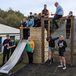 The second phase involved designing, constructing and installing a unique climbing frame. The Play To Measure team produced an innovative play space that featured everything wanted from a climbing frame including ladders, a slide, a climbing wall and nets! The climbing frame was assembled and installed on-site with the help of some of the school’s students.