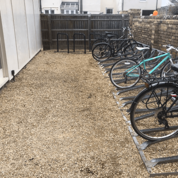 First, the space was cleared with the bike rack being removed and the existing gravel excavated.