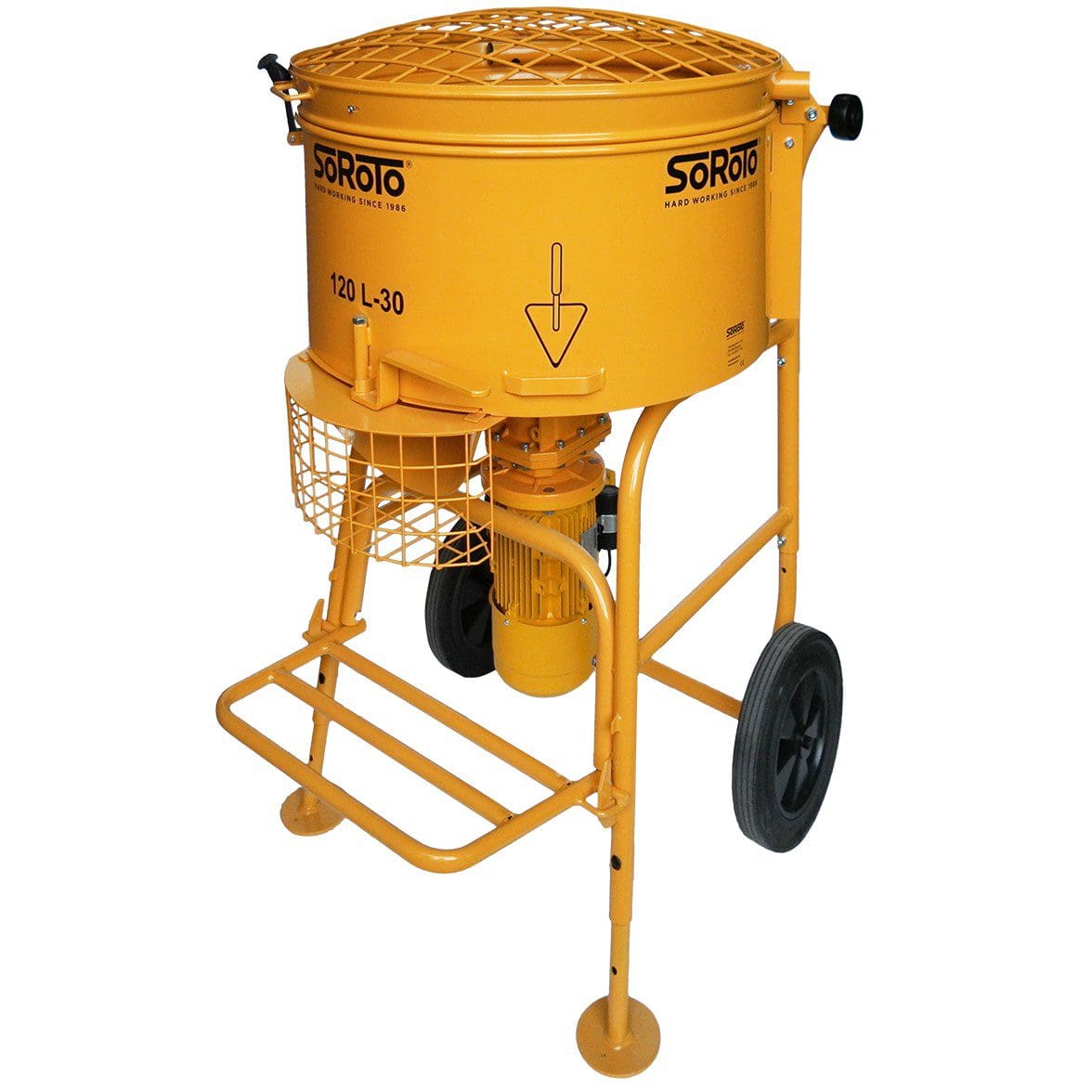 Manufactured to the highest quality, SoRoTo mixers are specially designed and manufactured to withstand the toughest of environments that machinery can face on building sites. With efficient but quiet motors and rugged, durable designs, each SoRoTo upright pan mixer is perfect for contractors who require high-capacity output machines which are efficient, portable and reliable.
